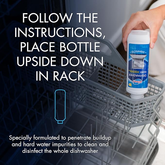 Glisten Dishwasher Cleaner, Removes Limescale, Rust, Buildup, and Grease, Lemon Scent, Made in the USA, 12 Ounce Bottle, 3-Pack