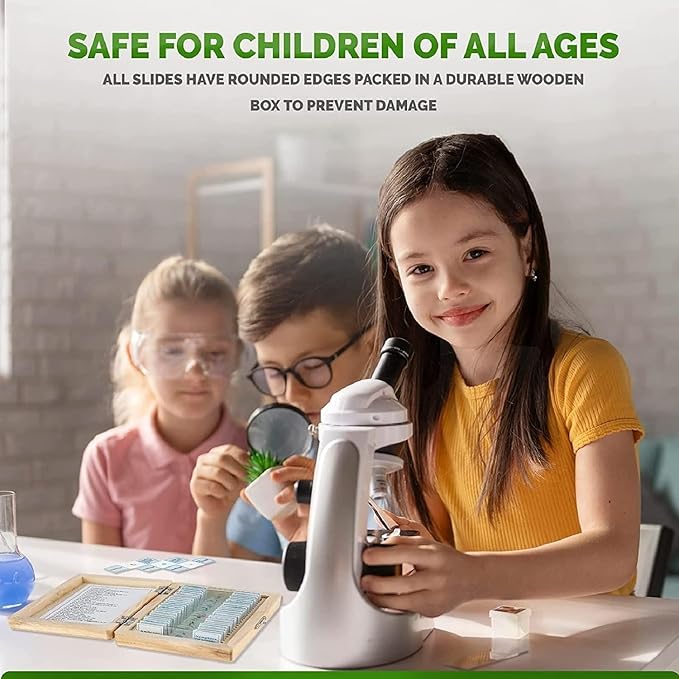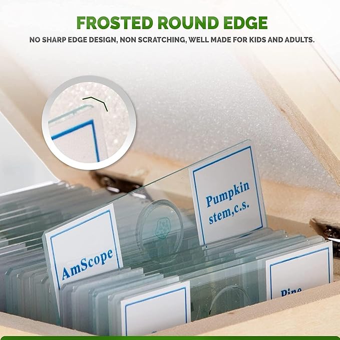 - Slides are composed of optical glass for clear viewing