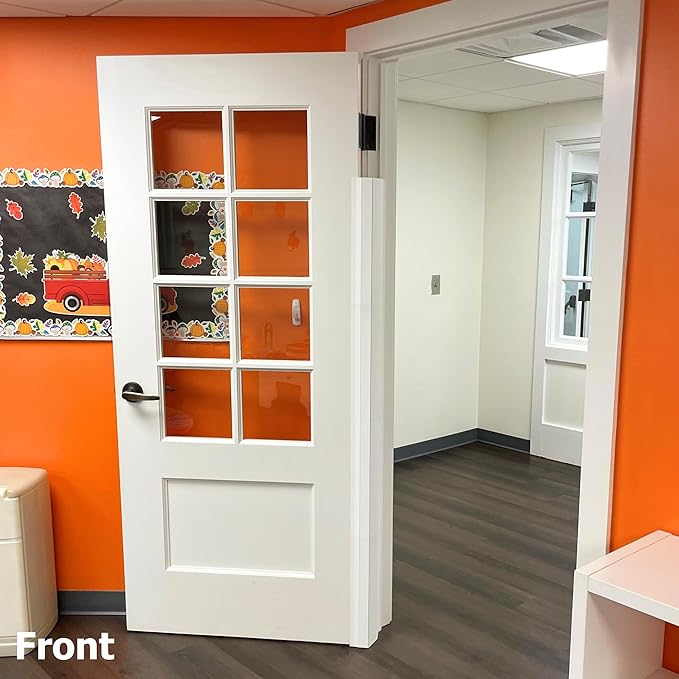 - PEACE OF MIND FOR PARENTS - Offers reassurance to parents and caregivers by ensuring that curious hands and fingers are protected from door-related accidents in high-traffic areas like homes, condos, cabins, daycares and/or apartments. While most childproof door products only cover the latch side of the door, this product goes beyond by safeguarding the hinge side gap, providing comprehensive protection for little ones.