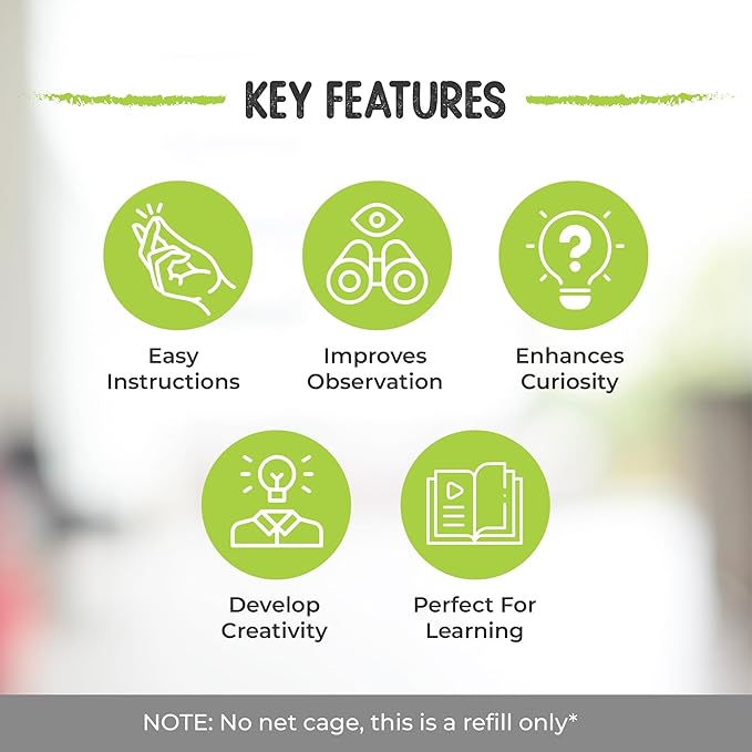 - Easy & User Friendly: The included rearing supplies make this kit simple to use. Your caterpillars for butterflies kit refill includes food, mister, butterfly feeder, sugar, eye dropper, easy instructions, and a life cycle coloring page.