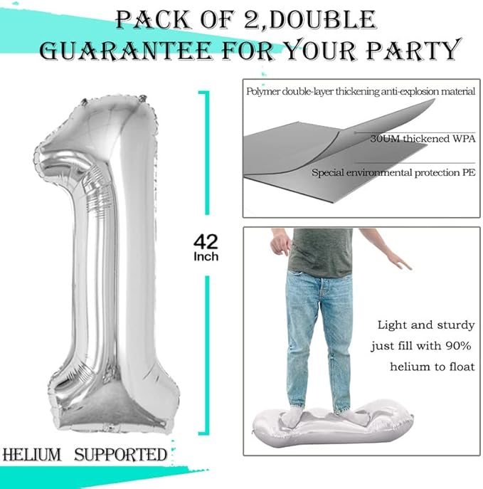 - 3 pcs Number 1 Balloons in Package,3 Guarantee for the 1st Birthday Party