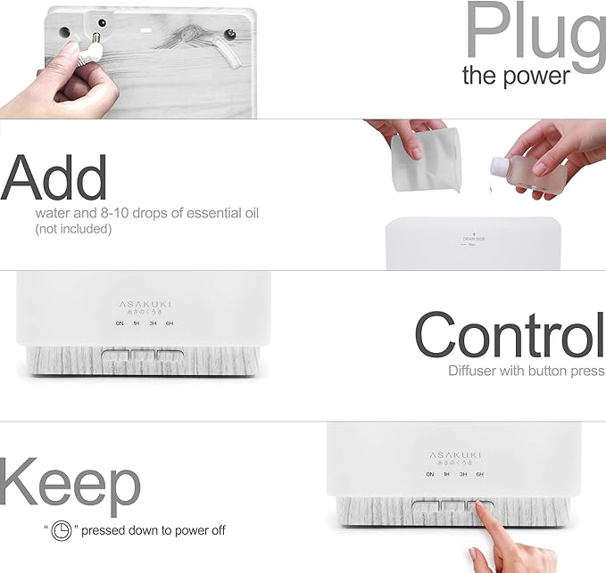 - Perfect For Different Occasions: The mist and light functions of this aromatherapy diffuser work separately. You can turn off the light at night while sleeping. Or use this diffuser as a nightlight. It's a wonderful companion for reading, sleeping, working or doing yoga.