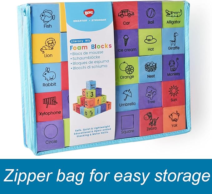 BOHS Foam Learning Blocks - Number,Alphabet,Shapes,Sight Words - Quiet,Safe and Soft Stacking Toys for Toddlers,30pcs,1.96 in(5cm)/Piece