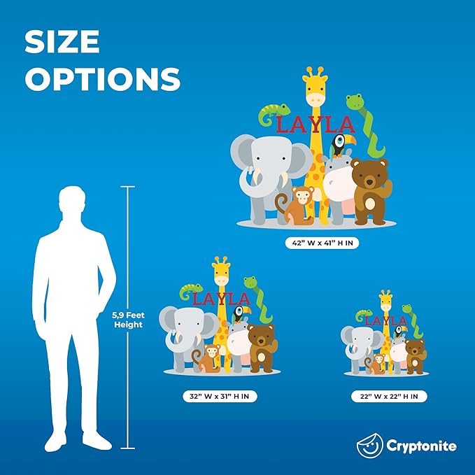 CRYPTONITE Personalized Name Jungle Animals Vinyl Wall Decor I Nursery Wall Decal for Baby Boy & Girl Decoration I Stickers for Kids I Multiple Options for Customization (A. Jungle Animals)