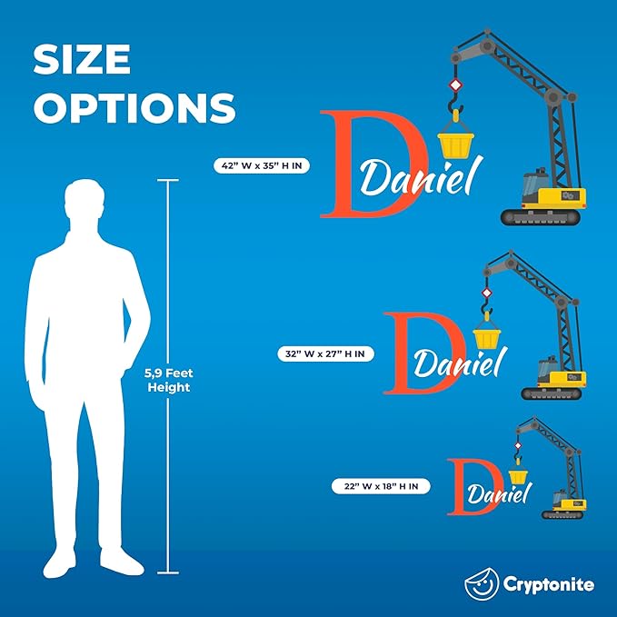 - đ¨ FULLY CUSTOMIZABLE: Elevate the ambiance of your child's room with a fully customizable name decal! You can also add elements: tools, signs, forklift truck, shovels, sun and cloud or helmet, shovel, and toolbox. Explore a variety of color initials, color names, and 3 sizes to create a wall sticker that perfectly aligns with your decor. Customize your space to perfection!