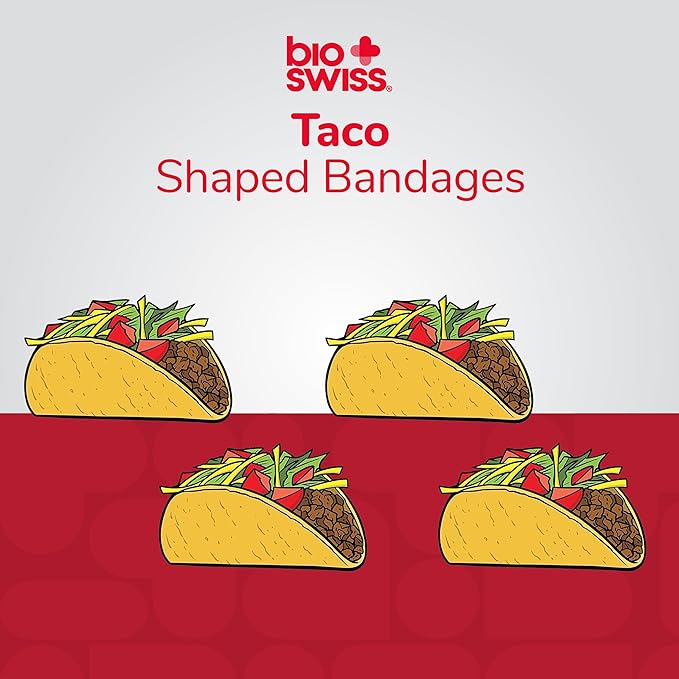 BioSwiss Bandages, Taco Shaped Self Adhesive Bandage, Latex Free Sterile Wound Care, Fun First Aid Kit Supplies for Kids, 24 Count