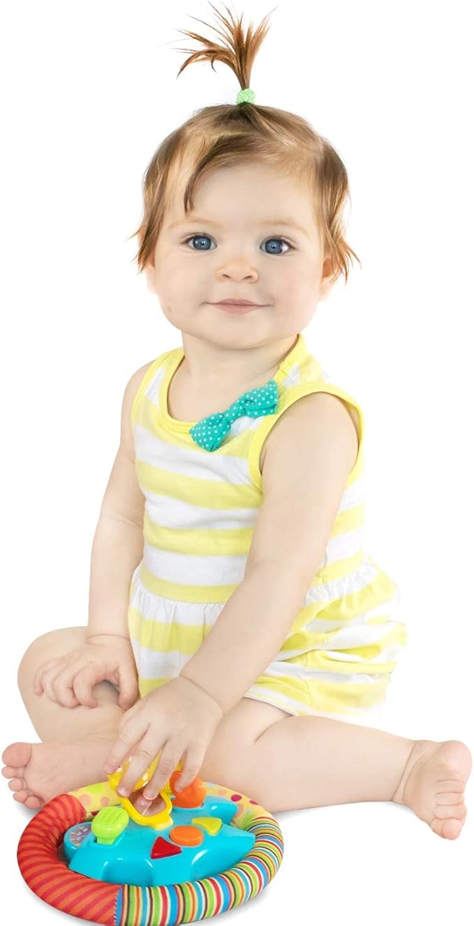- GREAT GIFT FOR NEW PARENTS – The perfect gift for any new parent is one that keeps your baby safely occupied while you drive, make dinner or simply throw in a load of laundry. Like the best baby toys for the 3 to 12 months set, this toy wheel lets baby explore and learn as they grow.