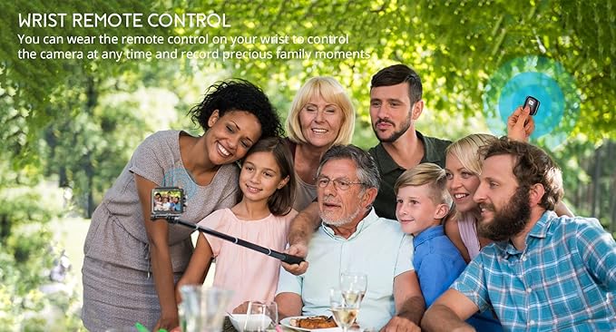 - 【Remote Control plus Wi-Fi】- You are able to control your camera remotely from 10 meters away with the remote control. Red button for photo taking and gray button for video recording. You do not need to hold the camera in your hands any longer. After downloading the App LIVE DV on your smart phone (iOS/Android) or tablet, you can control the camera on your devices, including changing settings, taking pictures, recording videos and downloading files.