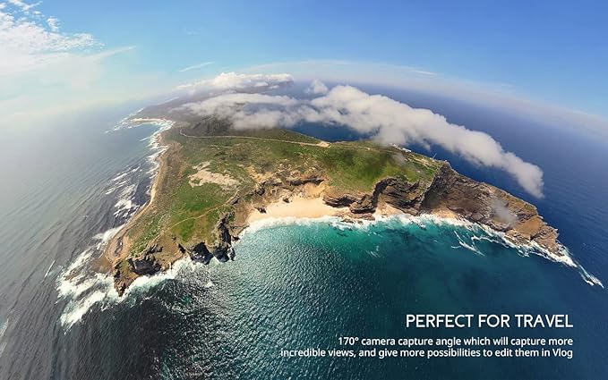 - 【Built-in and External Microphone】- Comes with external microphone which helps a lot in places where there is much noise or it is inconvenient to collect sound, such as skiing, cycling and so on. 170° wide angle enables the camera to record more while shooting scenery or important moments.