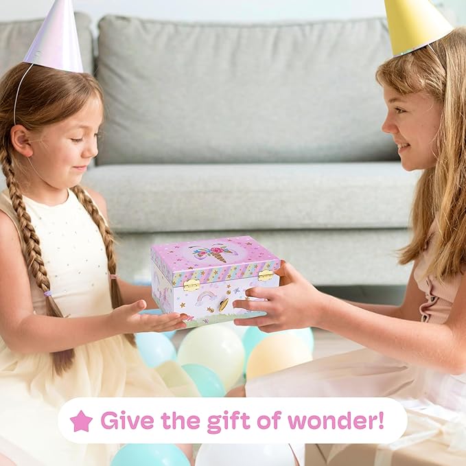- SPARKLING ROOM DECOR: Our childrens music jewelry box adds a magical touch to any room decor. Ideal as gifts for 5 year old girls, it complements unicorn-themed decorations and other cute stuffs