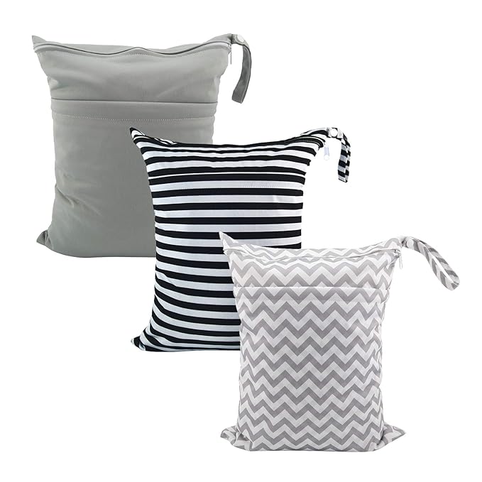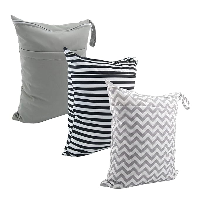 ALVABABY 3pcs Baby Cloth Diaper Wet Dry Bags Waterproof Reusable with Two Pockets Travel Beach Pool Daycare Soiled Baby Items Yoga Gym Bag for Swimsuits or Wet Clothes M Size 3L-ZM01