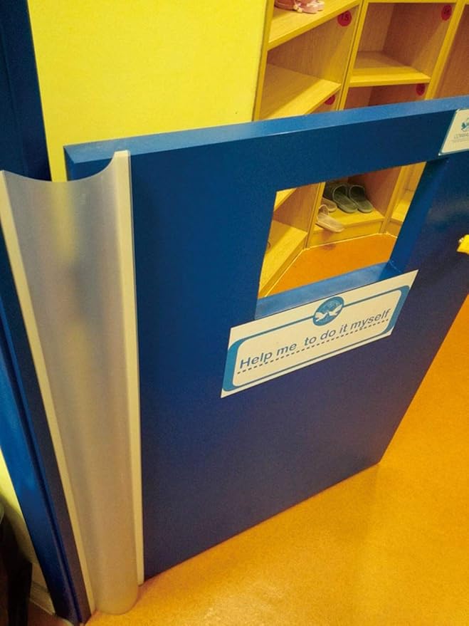 - Protects little fingers from getting injured in doors. Provides complete finger protection on the front hinge side of doors. Every child likes to put their fingers in the hinge. This smart, simple technology protects them from painful accidents.