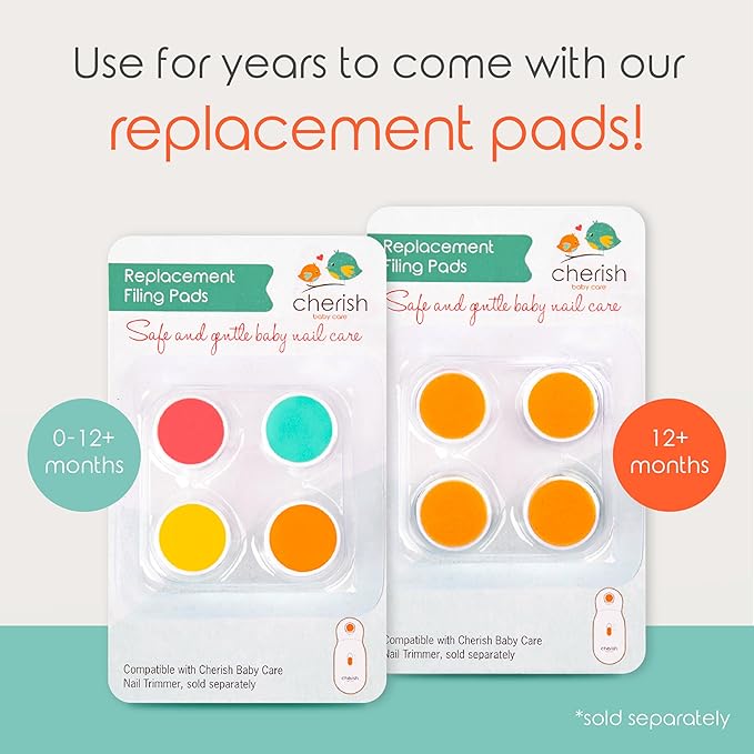 Cherish Baby Care Baby Nail Trimmer Electric - Automatic Safety Stop, BPA-Free & Safety-Tested Electric Nail File Baby, Includes 4 File Pads, 0-12+ Months
