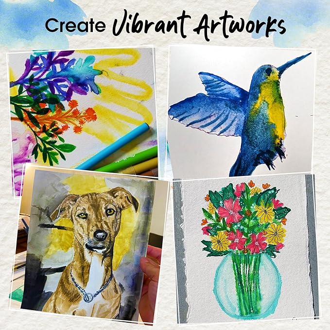 - Painting Pad - We’ve included a 15-sheet water color pad (5.8” x 8.3”) with our watercolor pens for artists. Its (200lb/300gsm) thickness and is made using acid-free, fine textured paper that’s great for use with our watercolor pens for adults