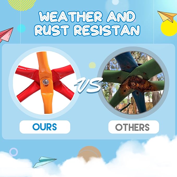 - Ultra-Safe Construction: Premium Safety Assurance: Our climbing dome features a reinforced steel frame supporting 500 lbs - exceeding safety standards for kids outdoor play equipment. The monkey bars for backyard integration and rounded edges make it safer than traditional playground sets for backyards, while textured grips ensure secure holds for little hands. Ideal for ages 3-8 with an impact-absorbing design.