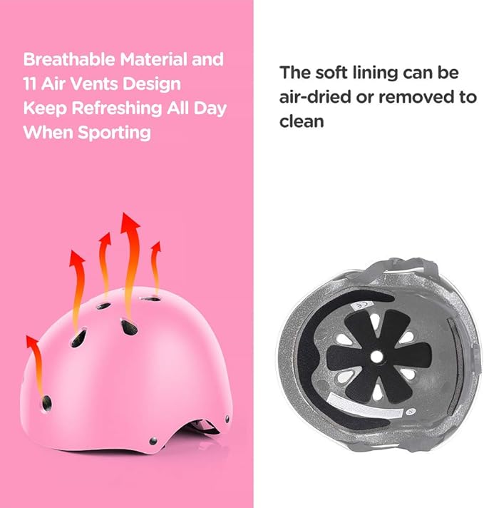 - Wonderful Material -- Our kids safety gear is adopted anti-scratch high hardness PVC shell padded with Soft EVA material. Those high-quality liners are not only durable for many years, but also breathable. Adopted ventilate fabric to keep cool and clean while biking, riding, cycling and skateboarding