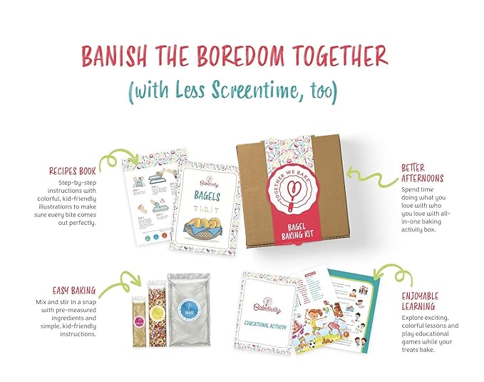 - LAUGH AND LEARN: The Bagel Kit Includes All Dry Ingredients - Premeasured And Vacuum Packed to Preserve Freshness, Awesome Educational Activities To Enjoy While The Cookies Bake!