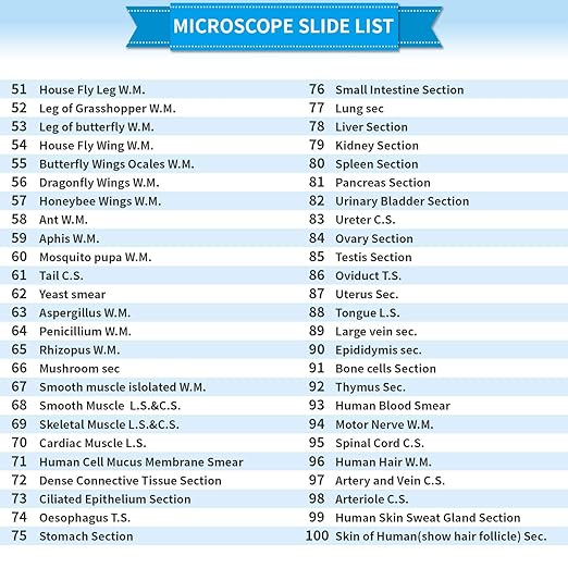 - 【Professional Grade Biology Specimens】100Pcs prepared microscope slides, labeling on each slide identifies specimens.