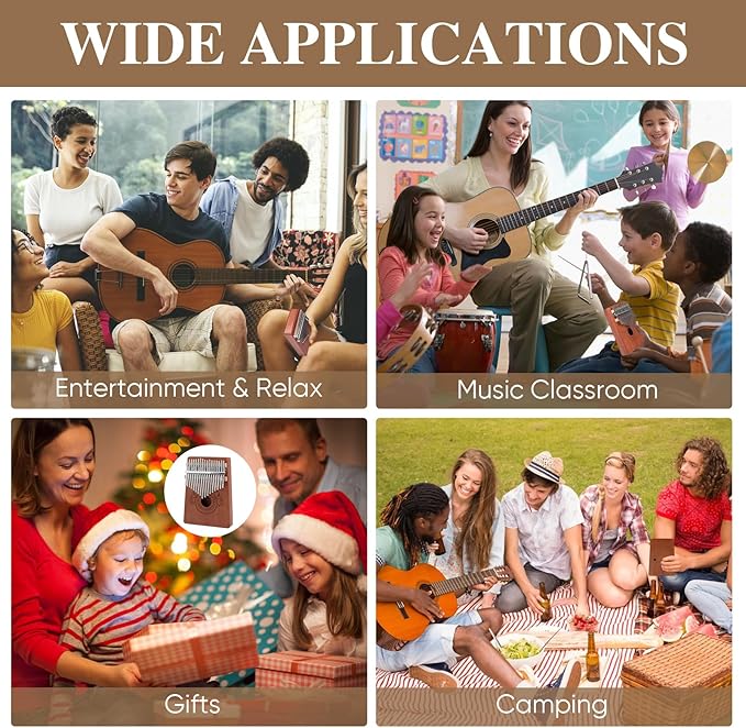 - Beautiful Soud: 17 key kalimba has a warm and rich tone like mahogany, with a sweet and pleasant sound. Finger piano kalimba body is made of solid wood and box structure, with strong resonance and a crisper, louder and longer sound. The kalimba 17 keys tuned in C are staggered for flexibility and wear resistance, and produce a pleasant resonant sound when played gently, ideal for acoustic playing