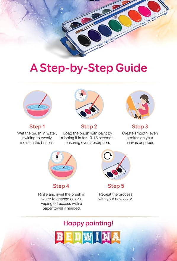- WASHABLE AND VIBRANT COLORS: A multi-pack of watercolor paint sets that's hard to resist. The 8 colors are colors made from high-quality pigments so you can create beautiful hues. The set includes everything you need to start painting right away and the vibrant colors are washable and easy for kids to use