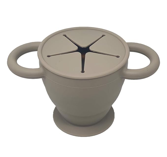 BraveJusticeKidsCo | Snack Attack II Snack Cup | Collapsible Silicone Snack Container | Toddler and Baby Snack Catcher Lid (Fog)