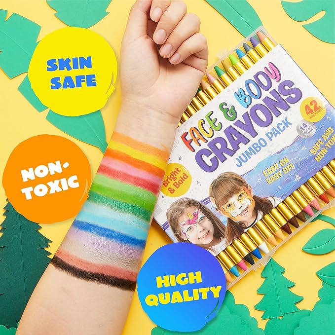 - UNIQUE AND FESTIVE: Bring your imagination to life and create amazing body art using these face and body crayons. This colorful set comes with a wide variety of color options and is very skin-safe. Easy to put on and easy to take off! Get these and enjoy a Party full of colors and fun!
