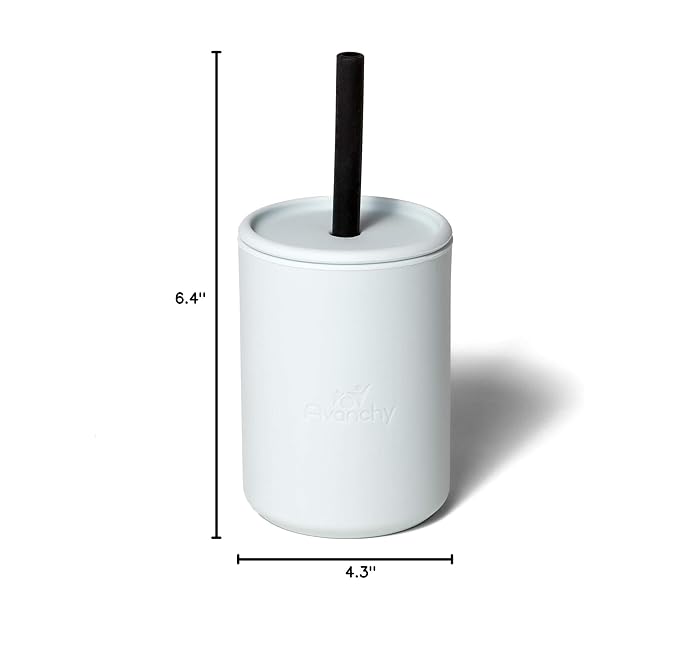 Avanchy Silicone Training Sippy Cup with Straw Lid – Tiny Cup for Babies 6+ Months to Toddlers 1 Year Old – 5 oz Infant Water Cup for Baby Led Weaning, Gray