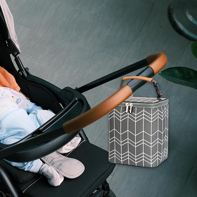 - High Quality:BABEYER Baby bottle bag is made of high Polyester dirt-proof fabric, and durable smooth mental zipper. The lining of the cooler bottle bag are waterproof and wipeable. The side pocket can put some useful items, like phones, keys and so on