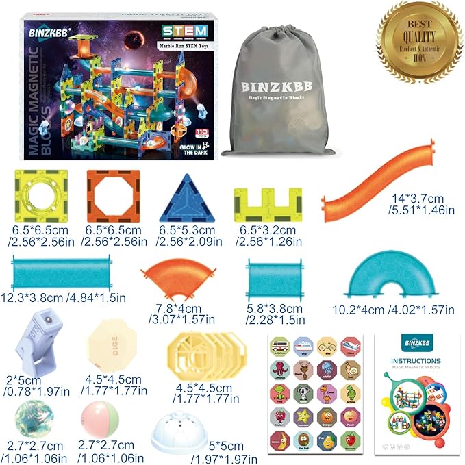 - 【Great STEM Learning Toy】STEAM Science,Technology,Engineering,Art and Math,all in one!Your little one’s would acquire strong sense of color,geometrical shapes, creativity,color and shape recognition,spatial imagination ability,patience and problem-solving skills.Glow in the dark Magnetic Building Blocks 110pc set are fun and creative,perfect educational presents for school age children that will never go out of style.