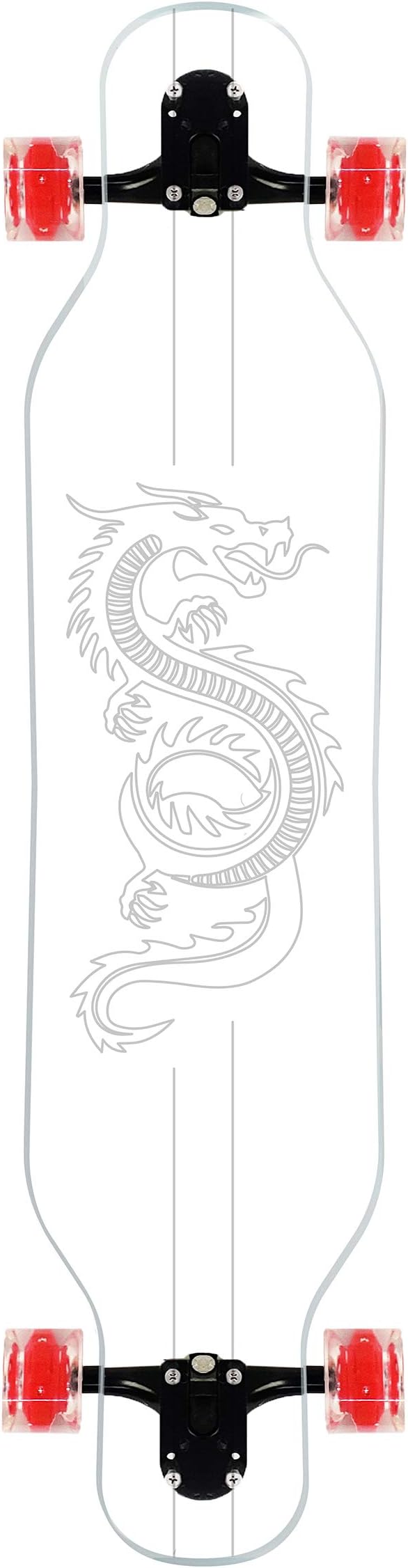 - Glow at Night: This longboard features durable light-up wheels that activate through motion, creating a visible trail during nighttime rides. With a balanced 70mm 78A construction, these ghost longboards glide smoothly on different surfaces. Its sleek build makes it ideal for those seeking clear long boards, whether for city cruising or relaxed outdoor use.