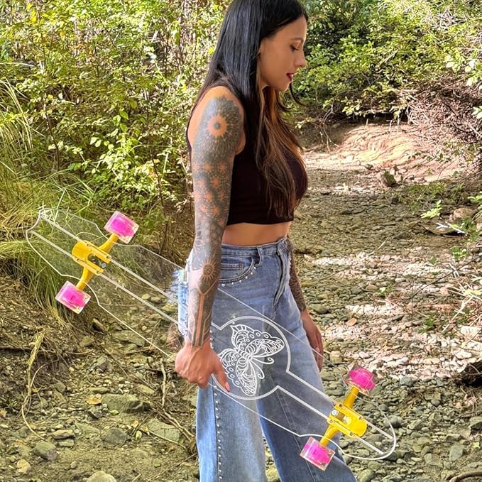 - Easy Maintenance Ride: This longboard requires minimal upkeep-simply rinse with water or polish with a board-safe cleaner to retain its clarity. Its durable body holds up well under everyday use, making it a reliable piece for both short and long sessions. Riders looking for alternative styles like clear skateboard or advanced lighting like skateboards with light-up wheels, will appreciate its long-lasting design.