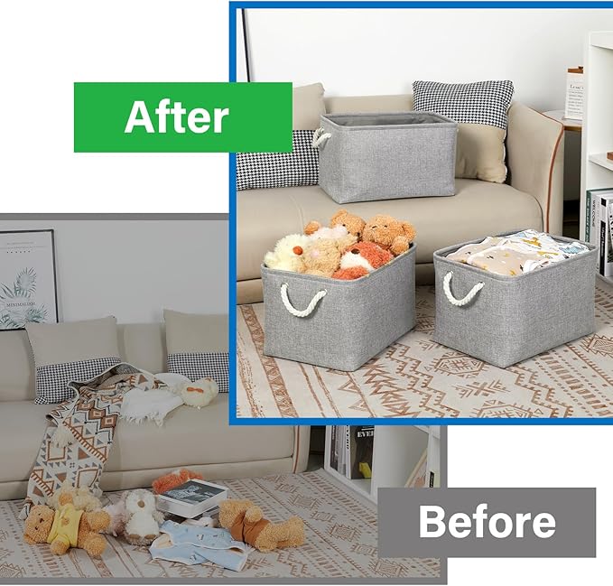 - Cotton Rope Handles and Premium Fabric: Soft handle will give you a very comfortable grip feeling, will not feel strangled hands, more easier to use the linen basket. The canvas storage bins equipped with soft and sturdy handles for moving conveniently. Sturdy soft handles on both sides are convenient to retrieve from shelves. These storage baskets are made of durable fabric which is strong and lightweight