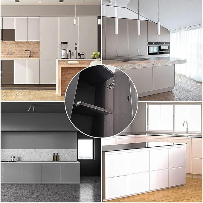 - PUSH TO OPEN: Built-in spring-loaded plunger system provides strong tension, you can just simply press the door to latch or unlatch. You can easily open the drawer or cabinet door without a handle or knobs, especially when you can’t free your hand to open the door. Create the clean, seamless look.