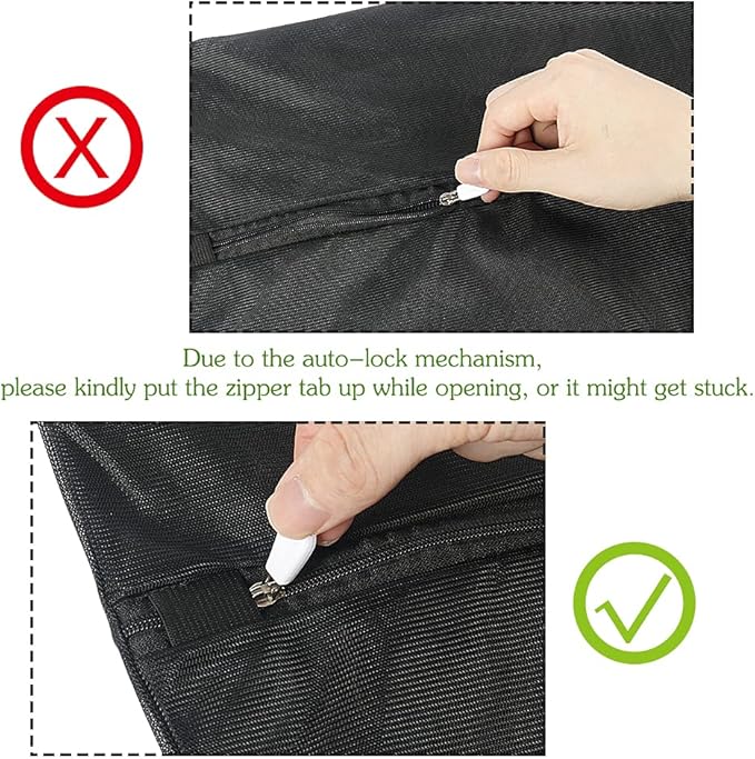 - WARM TIPS - Due to the auto-lock mechanism, please kindly put the zipper tab up while opening, or it might get stuck. And please remember to slide the zipper tab into the flap for extra protection