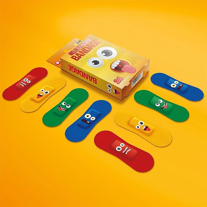- SILLY FACES BANDAGES: This 24 piece pack of cute and hilarious looking silly face bandages is great for putting a smile on kids' faces while protecting wounds such as cuts, scrapes, and burns, and come in 4 assorted styles; sticky bandages are perfect for kids and adults alike, and also for school nurses and pediatric doctors