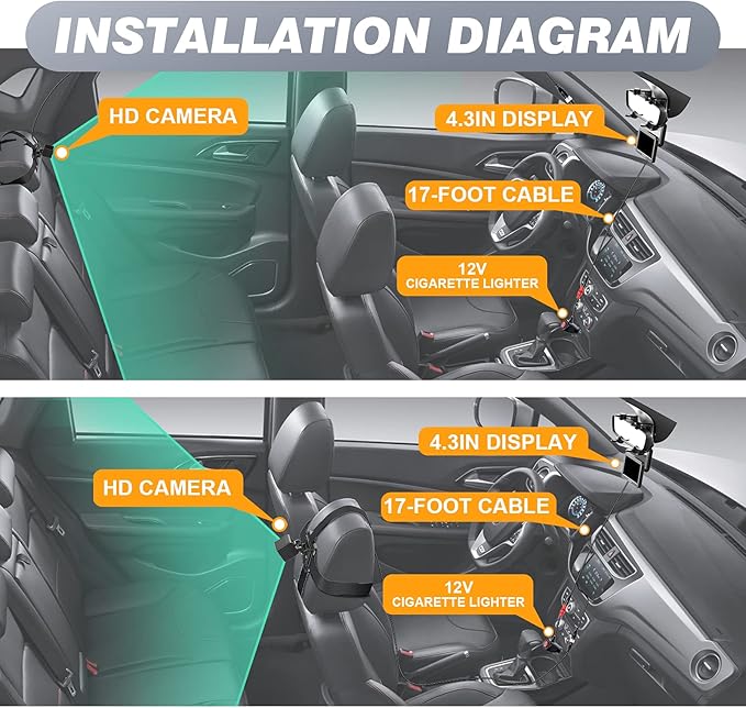 - 【1080P BABY CAR CAMERA】- Baby car mirror camera uses 1080P technology. 1920x1080P HD resolution image on our upgraded 4.3" monitor allows you to see your rear-facing baby on car back seat more clear when driving.