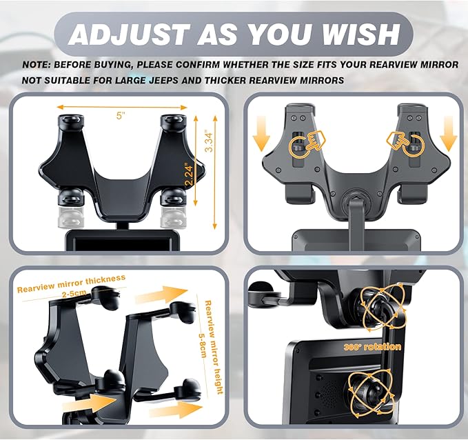 - 【DRIVING SAFETY】- The monitor can be installed under the rearview mirror, and you can clearly see your baby while looking at the car from behind. No need to take up the rearview mirror to see your baby, which enhances driving safety and greatly helps you focus on driving. Rearview mirror thickness 0.78-1.9 in, Rearview mirror height 1.9-3.1in