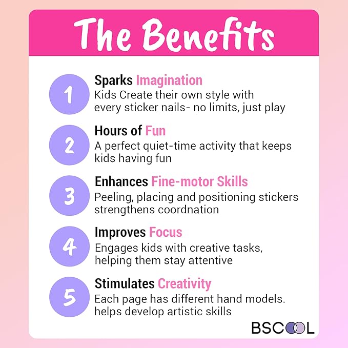 BSCOOL - Drawing, Coloring & Activity Book. Nail Design Book with Stickers and Guides. Fashion Design Sketchbook for Kids 5 and up. Little Designer Creativity Book - Nail Sticker Book. Gift for Girls