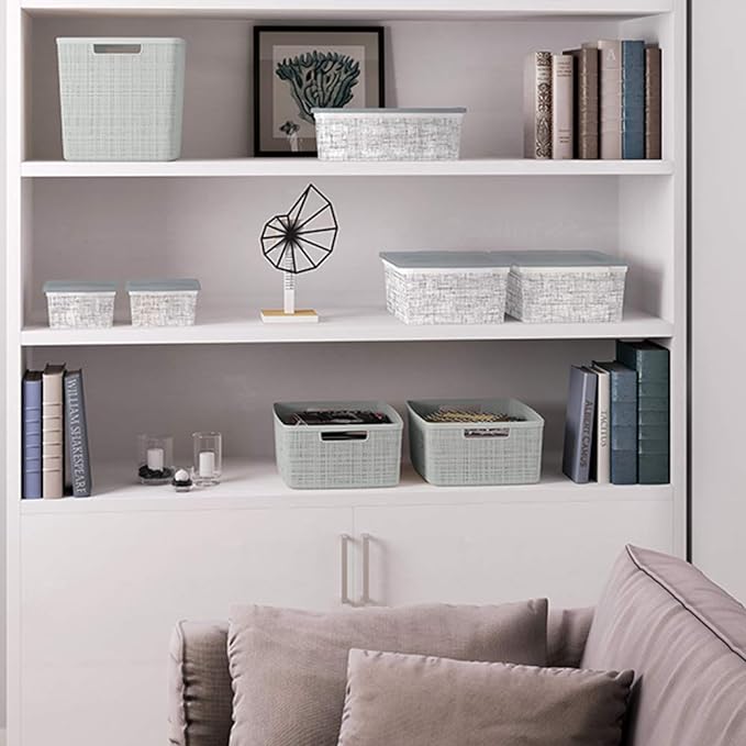 Curver Jute Decorative Plastic Organization and Storage Basket Perfect Bins for Home Office, Closet Shelves, Kitchen Pantry and All Bedroom Essentials, Small, Grey, Set of 8