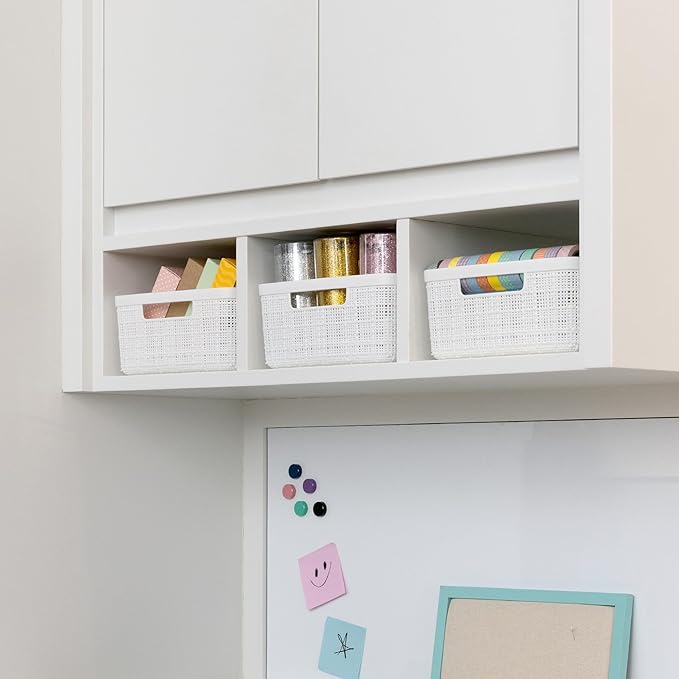 - Ideal for open shelf spaces, office desk organizers, laundry room organization and storage, and craft room storage