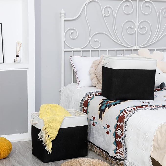 Bidtakay Baskets Extra Large Storage Bins for Clothes Set of 2 Black Baskets for Organizing Fabric Bins 17x12x15 In Tall Baskets with Handles Decorative Basket for Home Organiztion Dog Toy Baskets