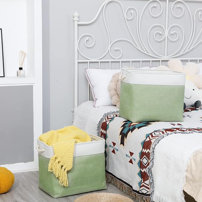 Bidtakay Large Storage Baskets for Nursery Toy Organizer Collapsible Organizing Baskets 17x12x15 In Green Canvas Bins for Organizing Set of 2 Clothes Decorative Baskets for Home Office Room Decor