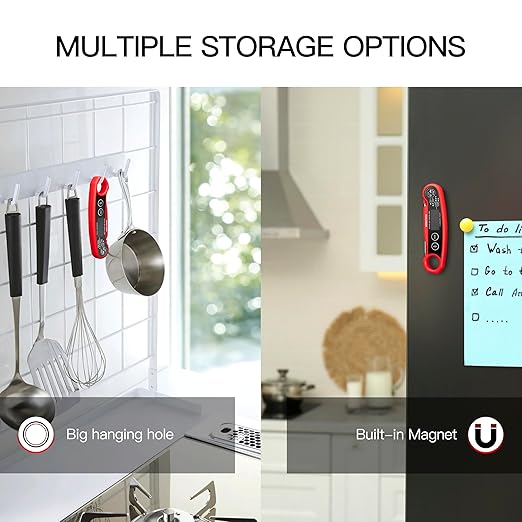 - Versatile Use, Convenient and Practical: Designed with a large hanging loop and a strong built-in magnet, this thermometer can be easily hung or securely adhered to metal surfaces, adapting to a variety of usage scenarios and improving efficiency. It's a breeze to handle in kitchen and barbecue settings.