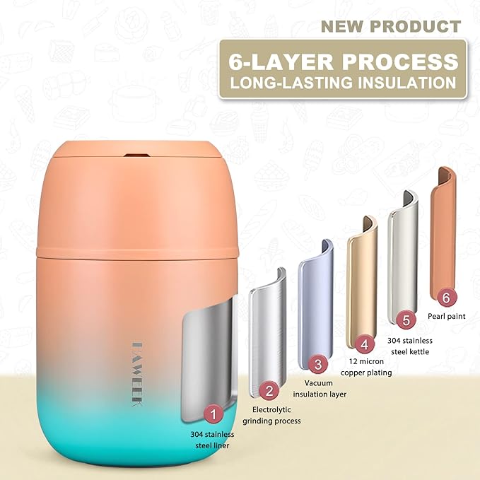 - 【Long Time Stays Hot/Cold】Double-walled construction with vacuum insulation for maximum heat retention, keeping contents warm up to 12 hours or cold for 24. The interior is constructed entirely of food-grade 304 stainless steel, ensuring hot foods never touch the plastic.