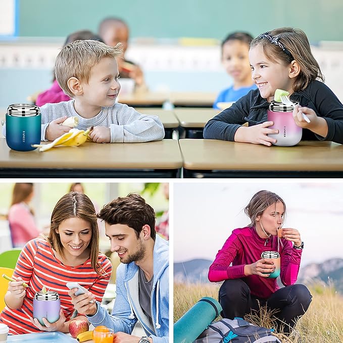 - 【Easy to Carry】 With silicone sealing ring, the insulated bento lunch box has been fully sealed. Confidently pack your leak-proof lunch container in your bag or backpack, it won’t leak when shaken or held upside down. Take your food thermo to school, work or travel without needing to reheat or refrigerate your food.
