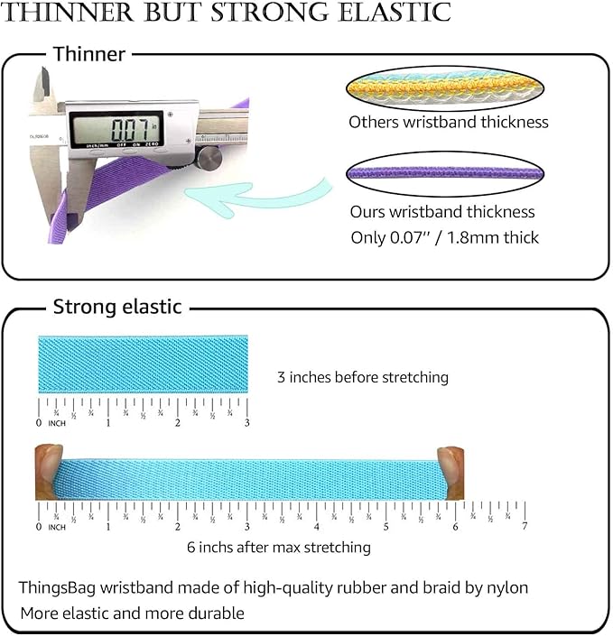 - π LIGHTER and THINNER : ThingsBag Airtag Wristband is thinner and lighter than others. Its weighted only 0.29 oz/8g, and the band strap is only 0.07 inches thick.