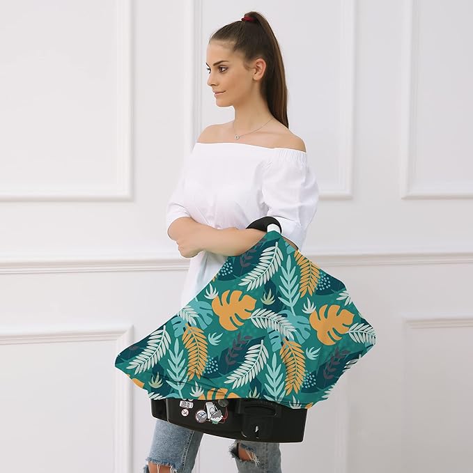 Carseat Cover Boy and Girls - Multi-use Nursing Car Seat Canopy Cover for Breastfeeding, Infant Stroller Cover, High Chair Cover (Green Leaves)