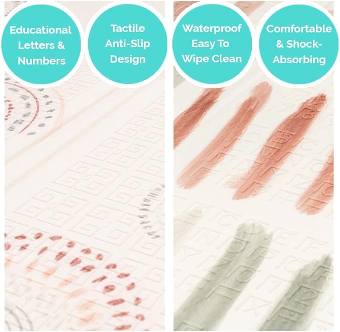 • Easy Cleanup- The soft foam mat is waterproof for easy clean up and prevents absorption and stains. Designed by parents for parents, you’ll love its convenience as much as your baby loves playing on it