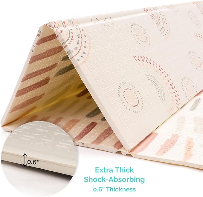 • Space To Play - This extra large baby play mat clocks in at 77 inches by 70 inches with a thick 0.6 in. padding, giving your little one plenty of space to crawl, play, or take a nap after they’re tuckered out