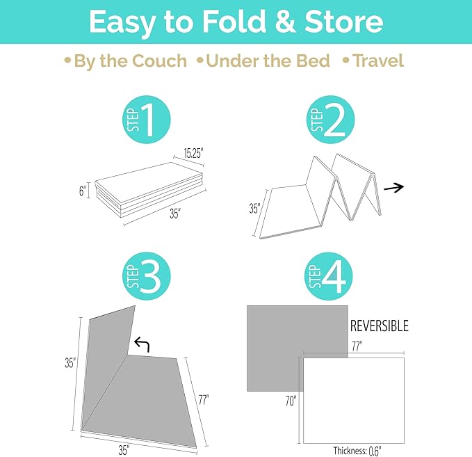 • Take It Anywhere - The accordion folding design makes for easy storage, so you can pack it up in the car and take this tummy time mat to the beach, park or anywhere that you like to relax with your baby